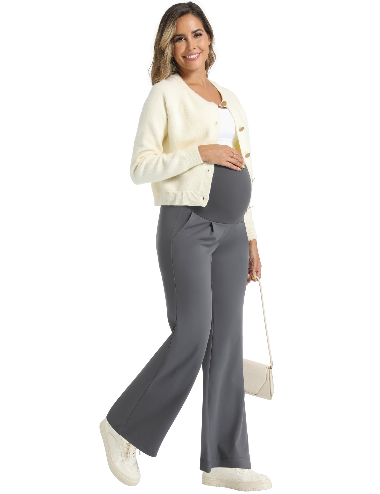 Note: These maternity leggings feature high-stretch fabric with pocket design.