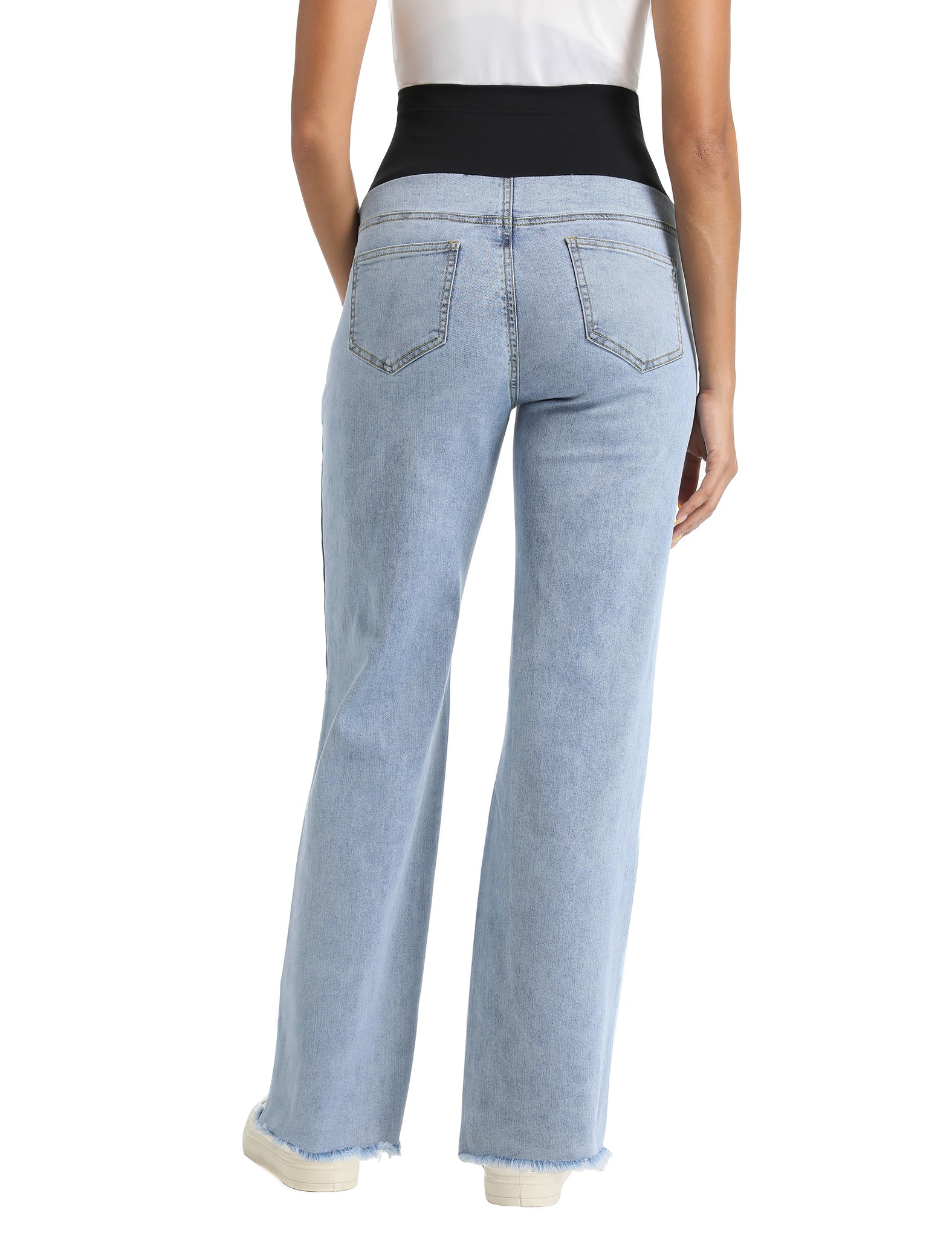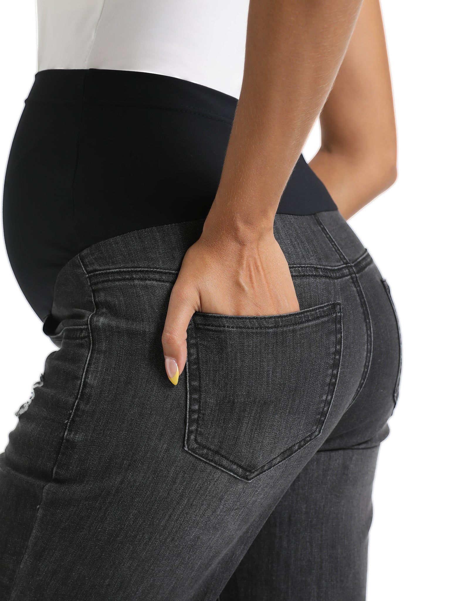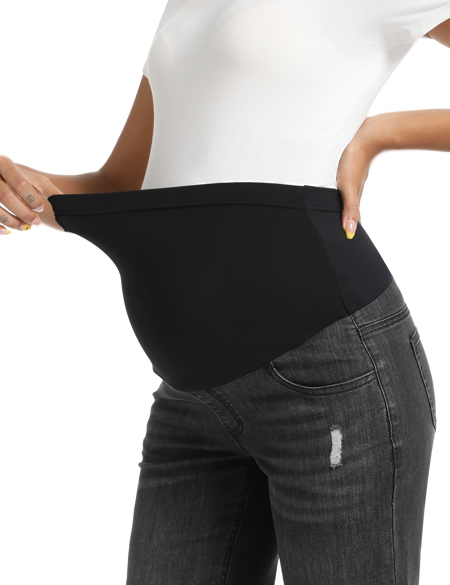 OVER THE BELLY SUPPORT - Our maternity jeans feature a full belly coverage design that provides a secure fit. The high-stretch fabric comfortably adjusts as your belly grows, ensuring comprehensive support throughout your pregnancy.