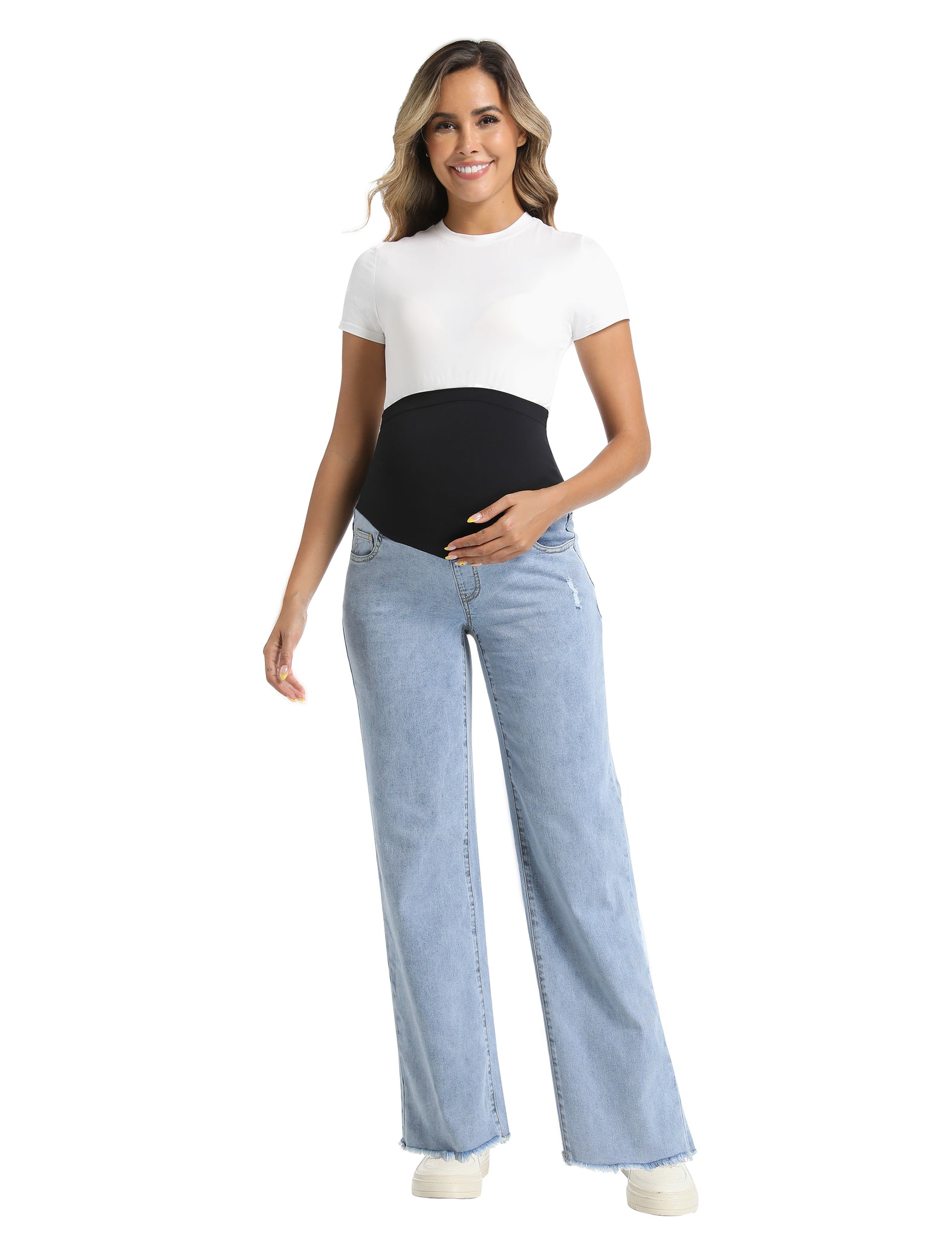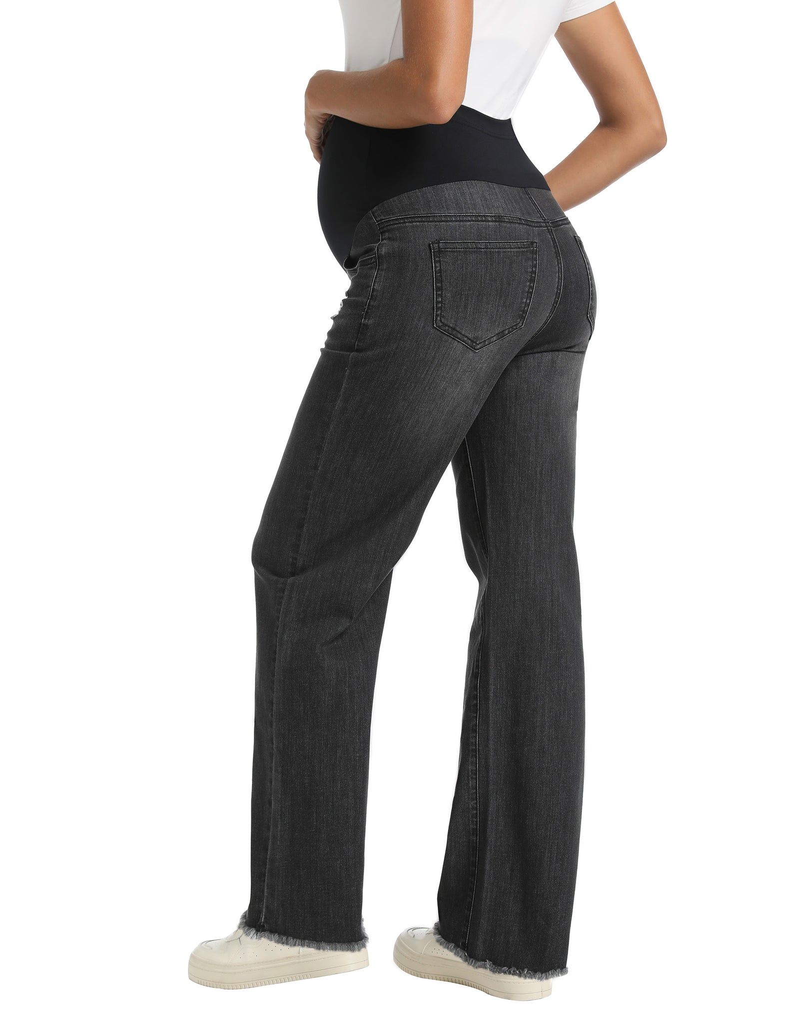 FOR EVERY OCCASION - Straight leg maternity jeans are the perfect addition to your wardrobe with their relaxed fit. Raw hem maternity jeans are versatile and can be easily matched to suit any occasion, whether it be everyday wear, office wear, street style, casual gatherings, or travel.